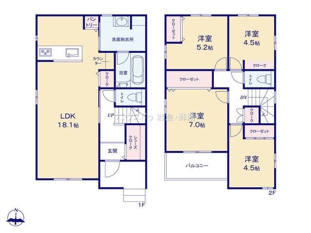 2階にはバルコニーが!4つある洋室は安心の各室収納!